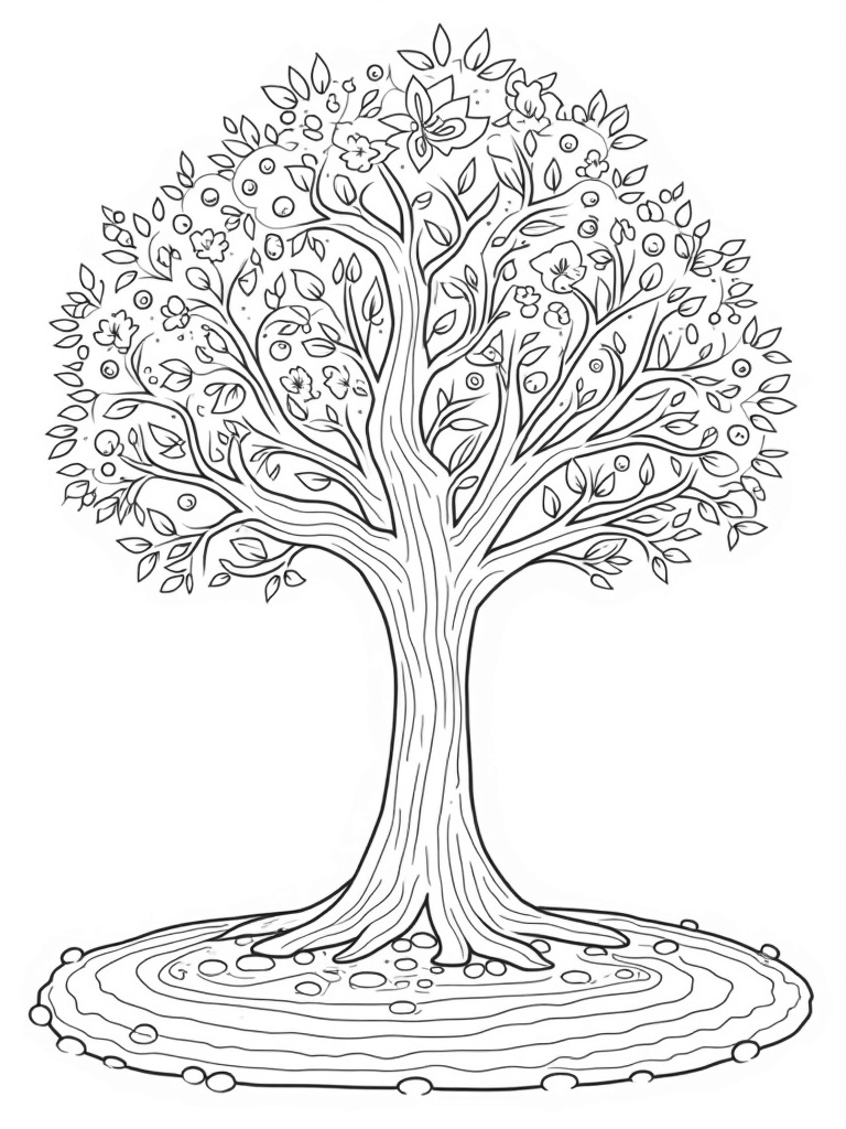 Below this enchanting tree, there's a charming winding path made of seasonal stones. Each stone represents a different time of year, leading you to a serene pond. The pond mirrors the vibrant colors of the tree's foliage, creating a peaceful scene that captures the essence of nature's changes. Grab your favorite colors and bring this seasonal masterpiece to life!