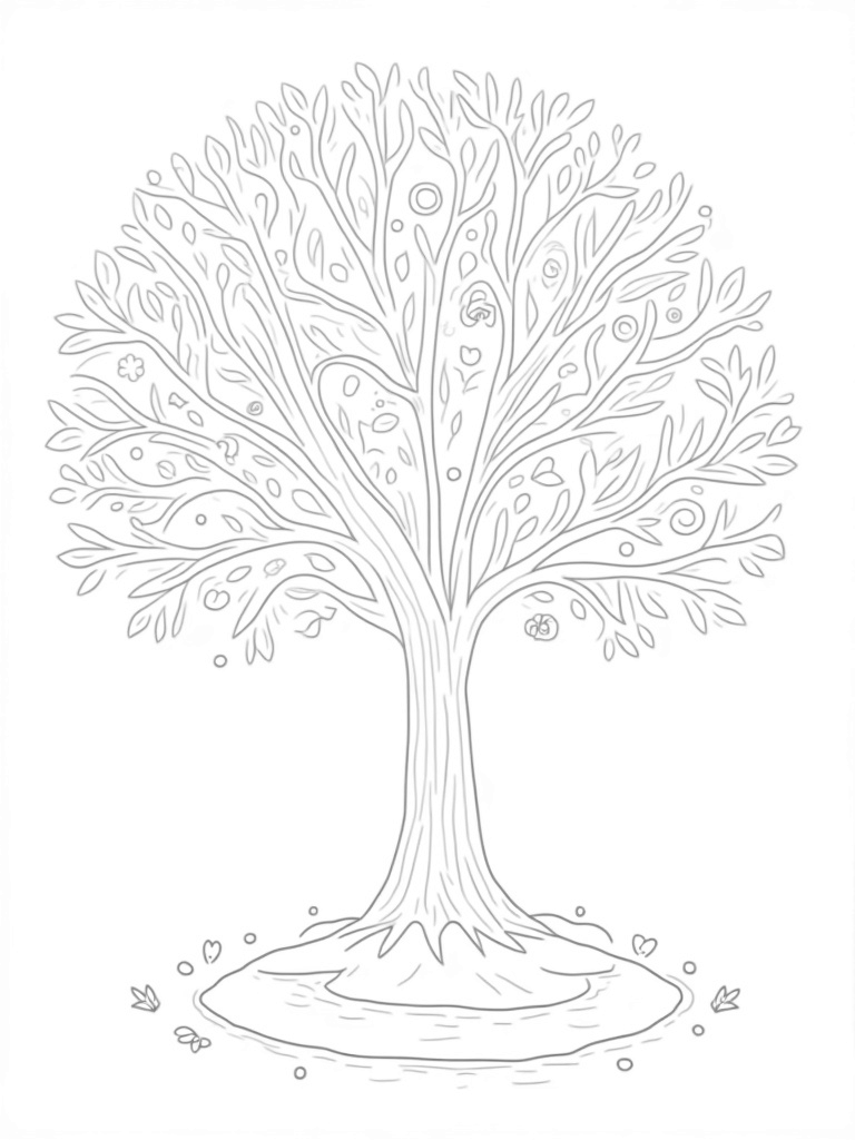 Grab your favorite crayons or markers and let your imagination run wild! You can choose vibrant colors for the flowers and fruits or soft blues and whites for the winter branch. The winding path and circular pond offer extra opportunities for creativity too. Maybe you want to add some little critters or your favorite colors to the sky!