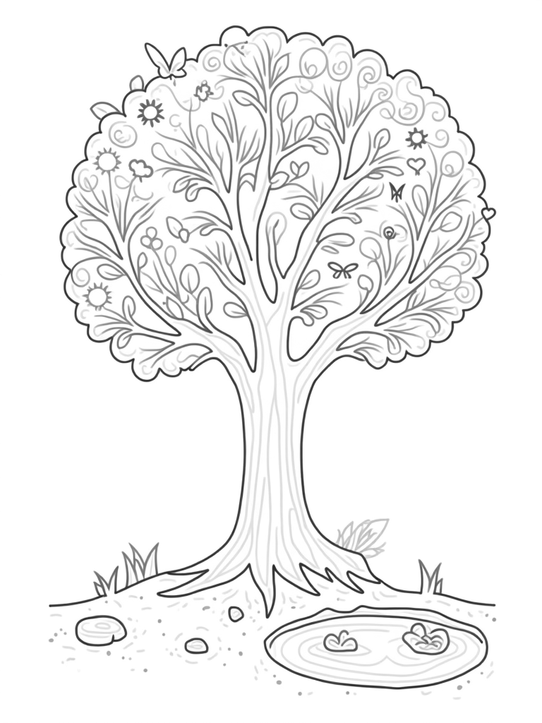 Grab your favorite coloring tools and bring this magical tree to life! You can choose bright colors for spring and summer or warm, earthy tones for autumn. Don’t forget the cool blues and whites for winter! Each branch is a canvas for your imagination, so let your creativity run wild.