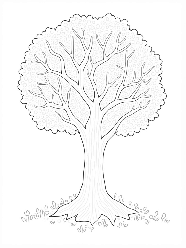 This coloring page showcases a whimsical tree divided into four sections, each representing a different season. On the spring side, you’ll find vibrant flowers blooming alongside a gentle stream that flows around the base. It’s a cheerful scene that makes you think of sunny days and new beginnings!