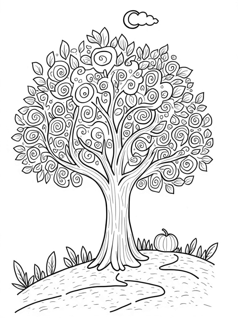Four Seasons Tree with Whimsical Details Coloring Page