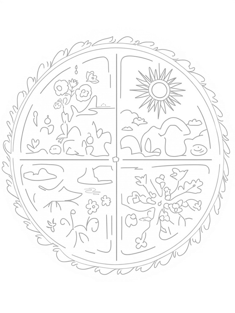 Seasonal Wheel with Spring, Summer, Autumn, and Winter Coloring Page