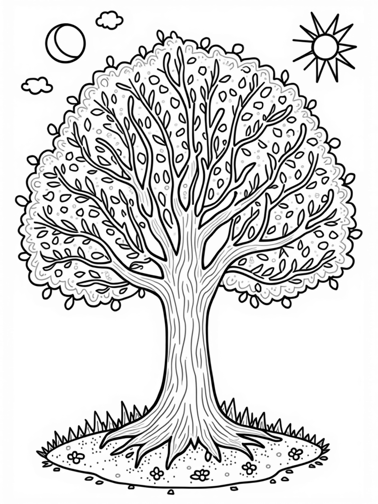 The Four Seasons Tree Coloring Page