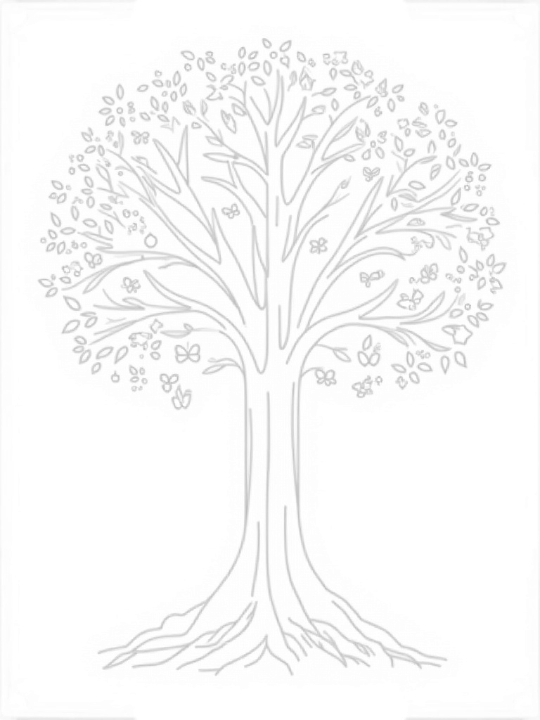 This coloring page showcases a gigantic tree with branches that stretch all the way across the page, each part celebrating a different season. On the left, you’ll see bright, blooming flowers of spring, with little butterflies dancing around them. As you move toward the middle, the scene shifts to summer, featuring lush green leaves and playful sun rays peeking through. Finally, the right side transforms into the warm tones of autumn, where colorful leaves swirl gently down to cover the ground.