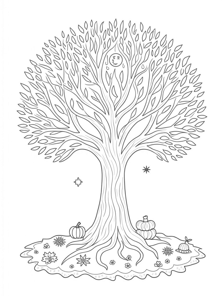 The Four Seasons Tree with Sun and Moon Coloring Page