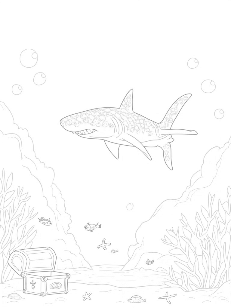 Dive into this free, printable coloring page featuring a coral shark in a kelp forest. Perfect for kids who love sea creatures, this fun design is waiting for your creative touch!