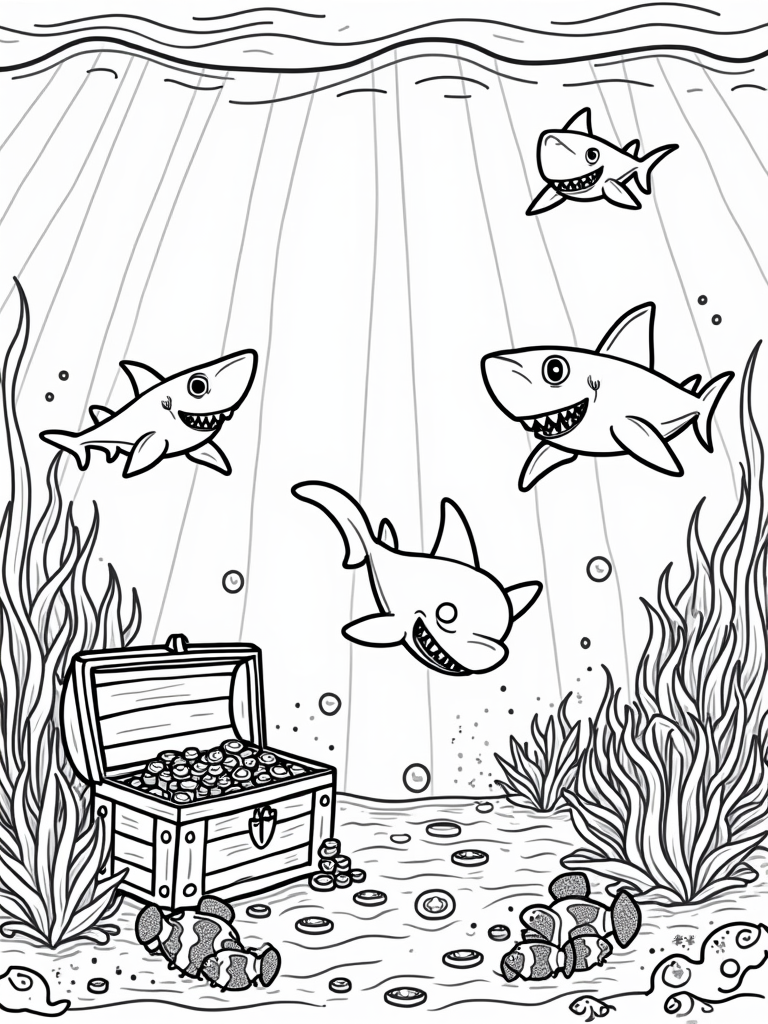 Friendly Sharks and Sunken Treasure Coloring Page