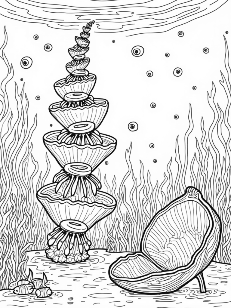 In the background, tall kelp forests sway gently like trees underwater, their leaves creating a serene atmosphere. Bubbles float to the surface, adding a dreamy touch to this underwater gallery. It’s a place where imagination comes alive, and every detail is just waiting for you to bring it to life with color!