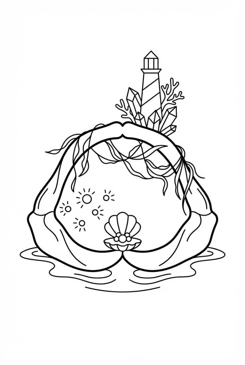 The line art is kept super simple—just clean strokes that let kids add their own splash of color. Kids can decide how bright the lantern fish glow, or what shade the lighthouse should be. The moonlight reflection is a fun chance to experiment with blues or silvers. The minimalist style also keeps the page uncluttered, so coloring stays relaxing.