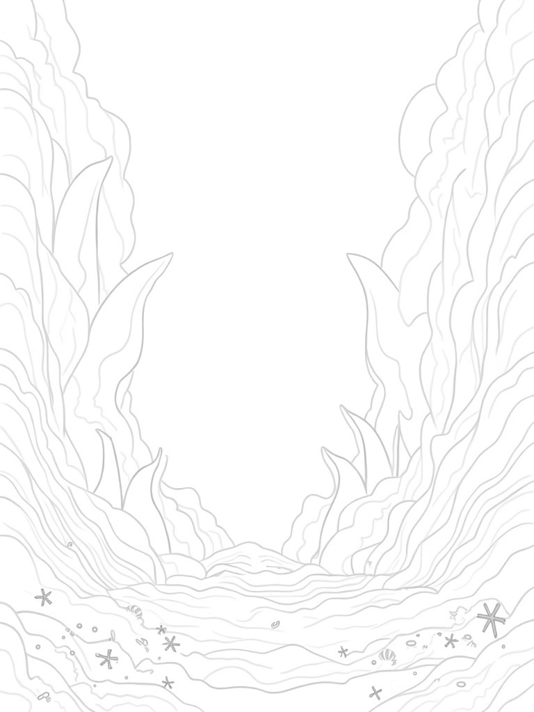 Right in the middle of it all is a unique coral reef shaped like a shark’s mouth, and guess what? Tiny fish are swimming in and out of its open jaws! This design combines the beauty of marine life with a fun twist that kids will love to color. And that sunbeam filtering down? It adds a magical touch to this underwater world!