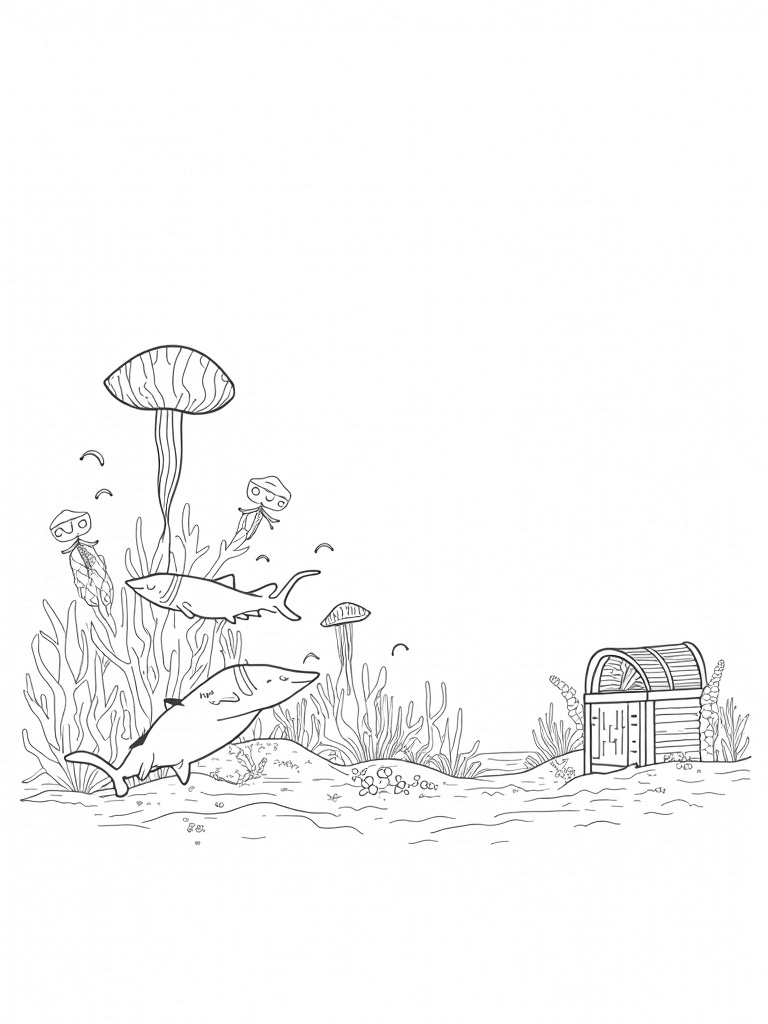 Underwater Carnival with Sharks and Jellyfish Coloring Page