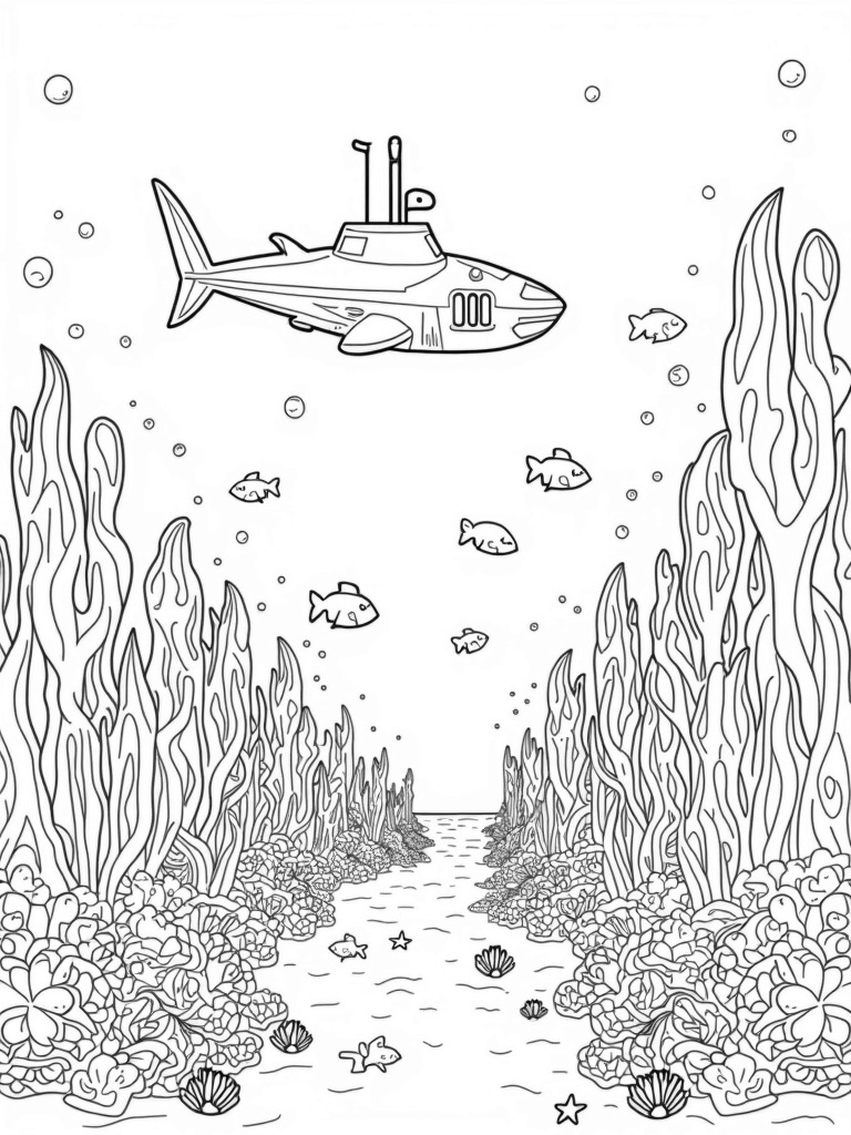 Grab your favorite coloring supplies and bring this underwater city to life! You can choose bright colors for the coral and seashells, or maybe even some cool blues and greens for the water. Don't forget to add your own twist to the submarine—what colors will you use? Coloring is a great way to express yourself and let your imagination swim free!