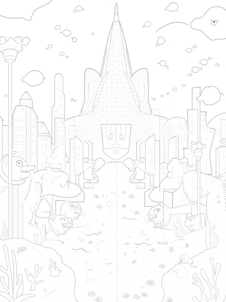 Underwater City of Shark Coral Structures Coloring Page