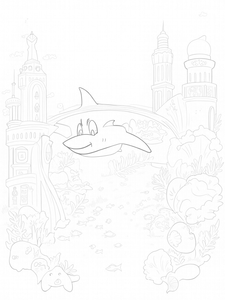 Check out this free, printable coloring page featuring an underwater city with a friendly hammerhead shark! Perfect for kids who love sharks and ocean scenes, this coloring page is sure to spark creativity.