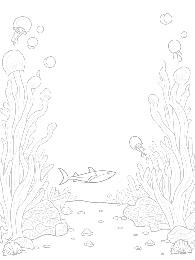 Underwater Garden with a Shark and Jellyfish Coloring Page