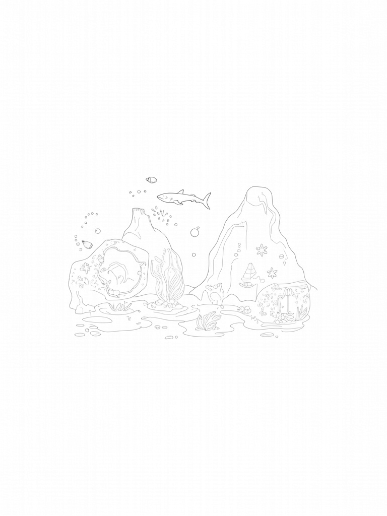 Besides the shark, there are so many interesting things happening here. The rocky reef in the background is home to starfish and colorful anemones, adding even more life to this underwater world. Each part of the picture has its own unique textures and shapes, making it a delightful experience to color. It’s a perfect chance to let your imagination run wild!
