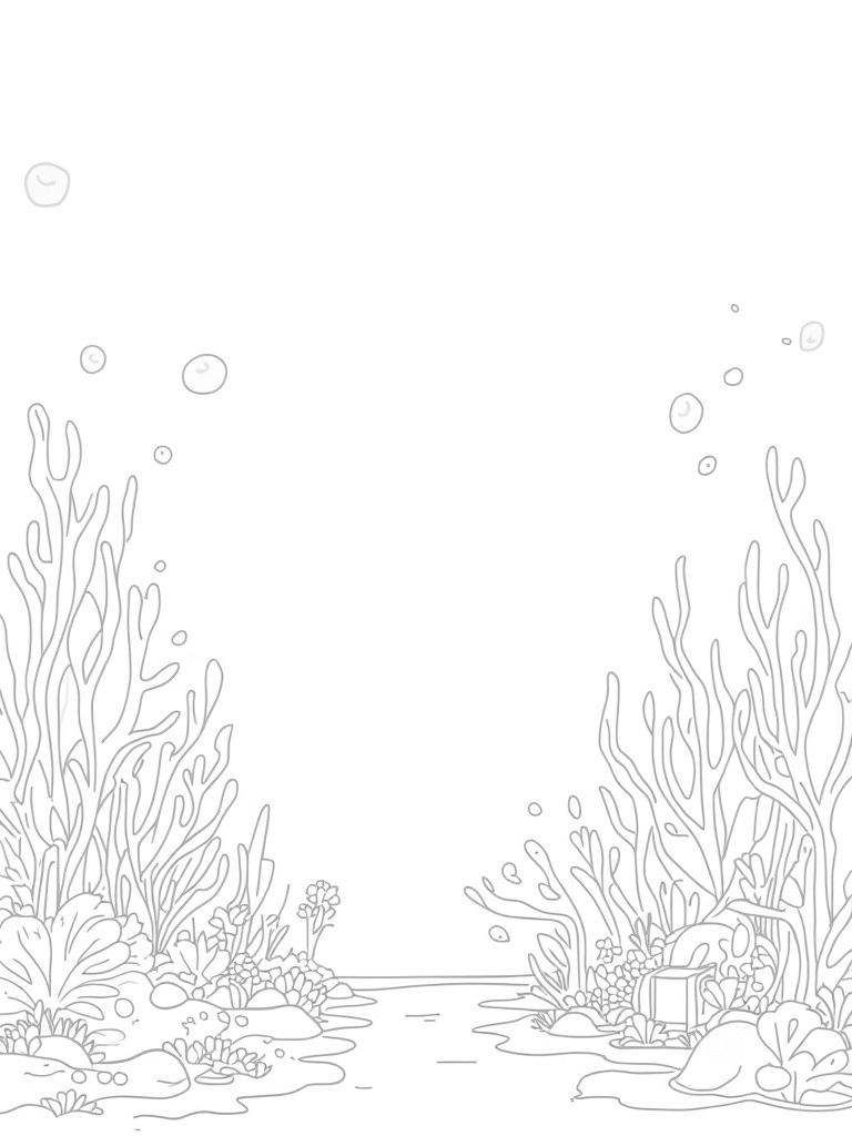 Underwater Garden with a Shark and Treasure Coloring Page