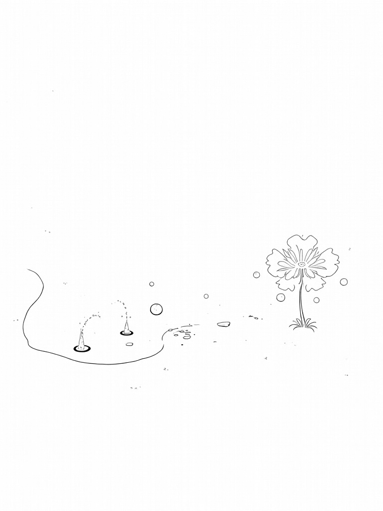 Imagine a garden that's not just on Earth, but in the cosmos! This coloring page showcases gigantic flowers, each petal a colorful representation of different planets. Right in the center, there's a swirling nebula fountain that spills stardust into a sparkling pond. It's like something out of a dream!
