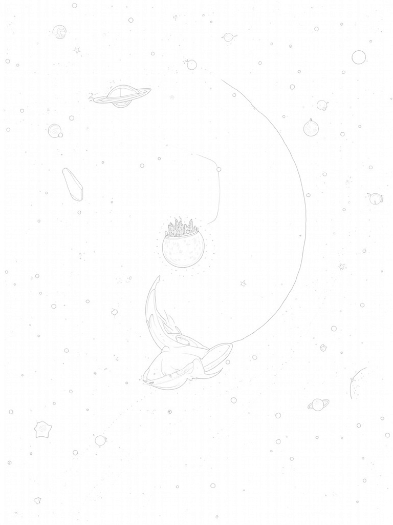 Crescent Moon and Crystal Planet in a Colorful Nebula Coloring Page