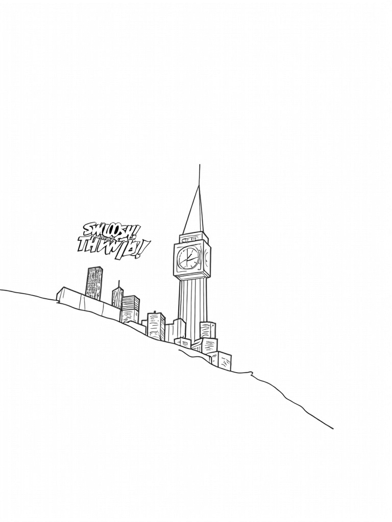Twilight Cityscape with Spider Clock Tower Coloring Page