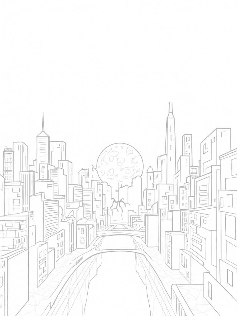 Twilight Urban Skyline with Spider and Stars Coloring Page