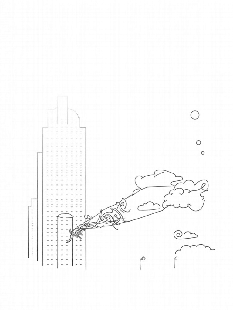 Down below, the streets are alive with activity. Bold outlines of cars zip by, and streetlights glow, illuminating the night. It's a perfect mix of urban life and nature, all waiting for your colorful touch to bring it to life!