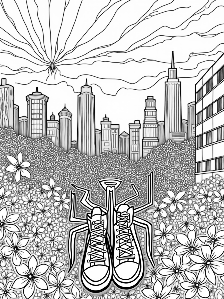 Grab this free, printable coloring page featuring an urban skyline playground inspired by Spider-Man! With vibrant flowers, oversized sneakers, and fun gadgets, it’s perfect for kids who love to color and let their imaginations soar.