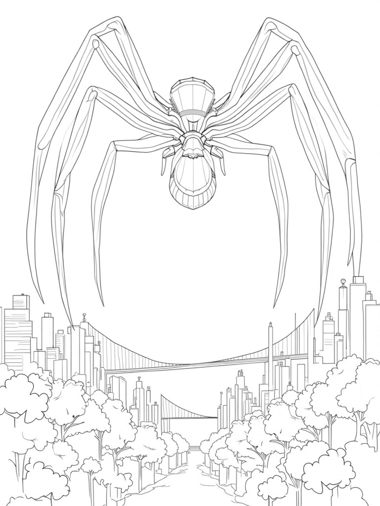 Floating below the spider are oversized comic book panels filled with iconic city moments, making it a fun challenge to bring them to life with color. Don’t forget the giant web that connects two buildings like a swinging bridge, making it all feel super playful. And in the foreground, you’ll find colorful skyscrapers, streetlights, and park trees all mixed up with the delicate spider silk. It’s a great way to combine nature and city life in one picture!