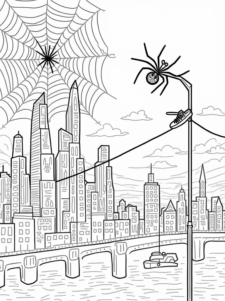 Check out this free, printable coloring page featuring a unique urban skyline with a giant spider web! Perfect for kids who love imaginative scenes, this coloring page is sure to spark creativity and fun.