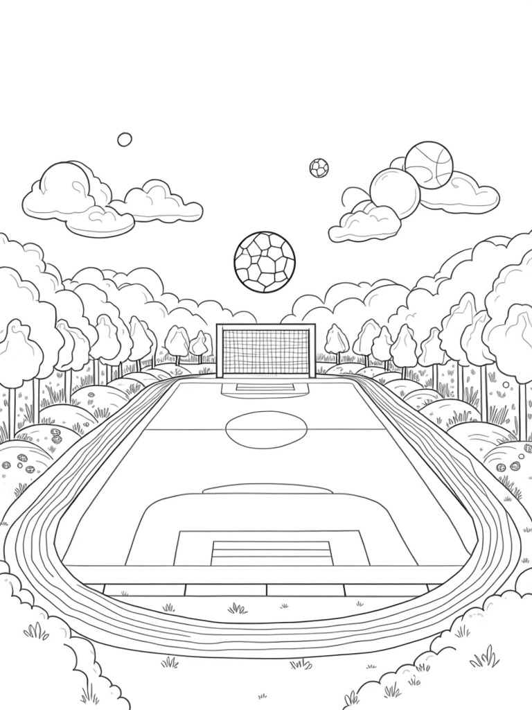 The sidelines are lined with oversized sneakers sprouting flowers, which is such a creative twist! Plus, there’s a winding ribbon of grass that forms a track around the scene, inviting everyone to run and play. This coloring page is perfect for little athletes and nature lovers alike!