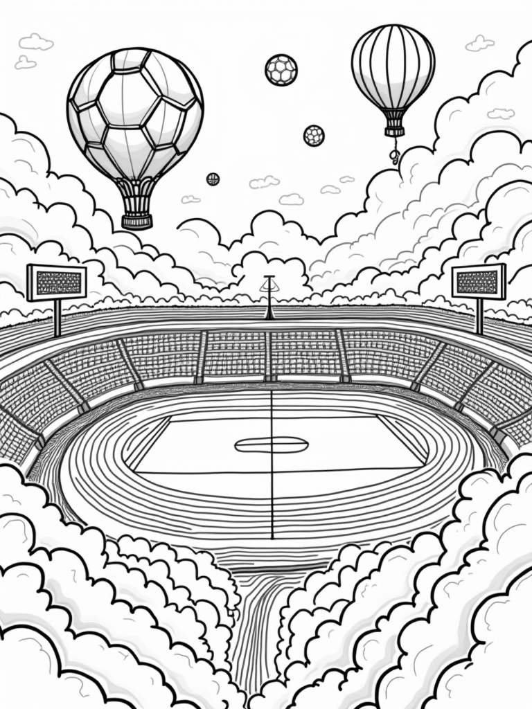 Floating Sports Arena in the Sky Coloring Page