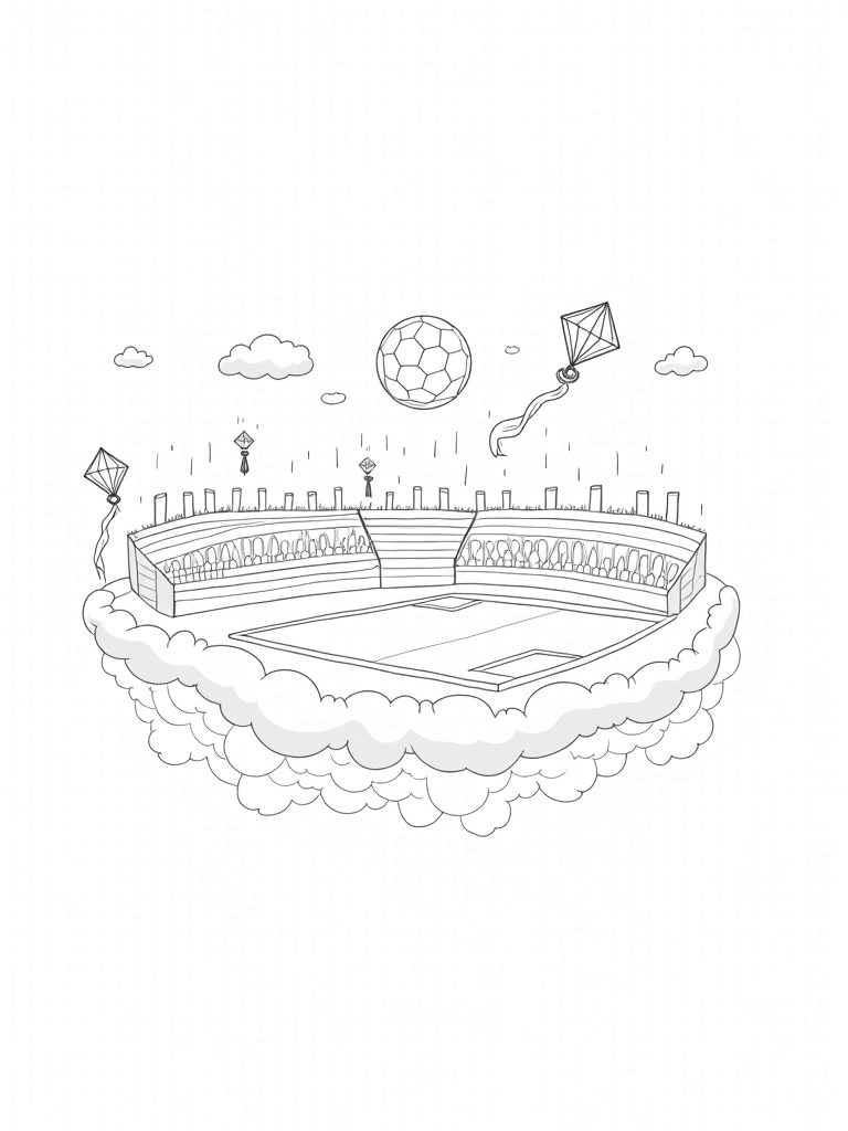 Floating Sports Arena with Cheerful Raindrops Coloring Page