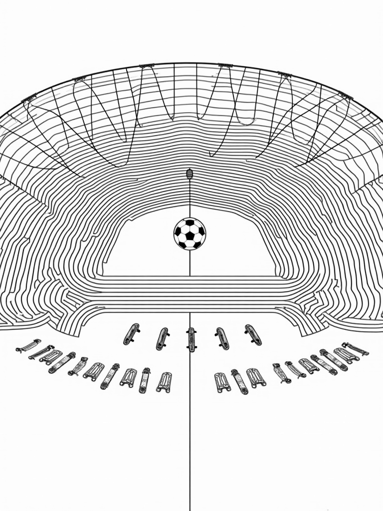 At the heart of this arena is a colossal soccer ball, serving as the perfect center stage for all the action. Around it, vibrant running shoes twist and spiral into looping tracks, inviting kids to color them in their favorite shades. It’s like a playground for the imagination!