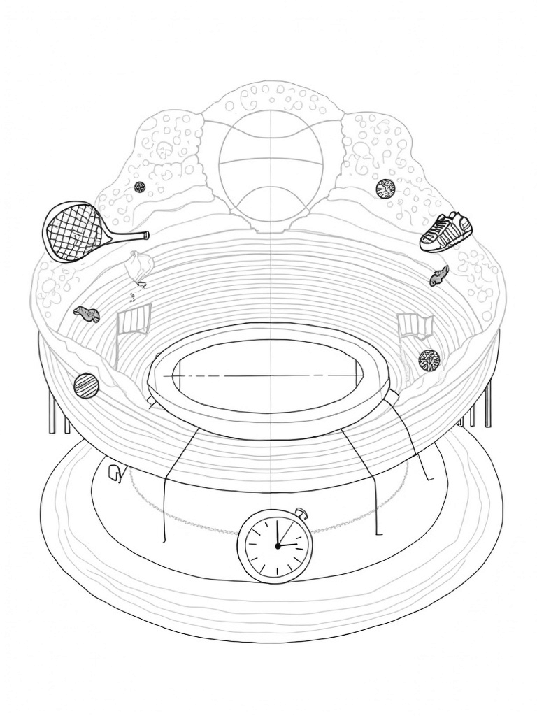 Giant Basketball Arena with Tennis and Soccer Fun Coloring Page