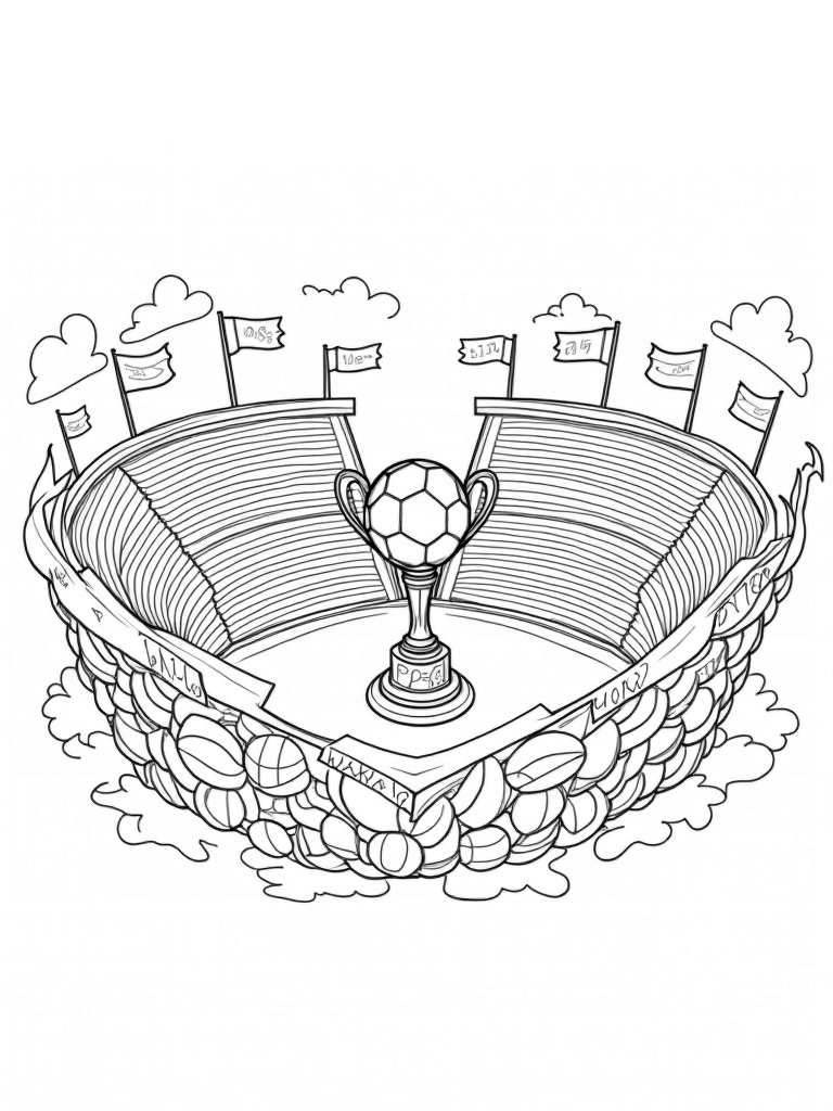 Giant Soccer Ball Arena with Whistles and Trophies Coloring Page