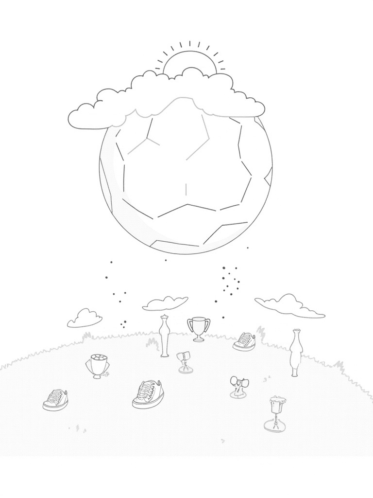 Check out this free, printable coloring page featuring a giant soccer ball, whimsical clouds, and oversized sneakers. It's perfect for sports fans and will keep kids entertained for hours with loads of fun details to color!