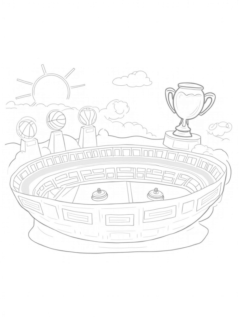 Giant Trophy Sports Arena with Floating Balls Coloring Page