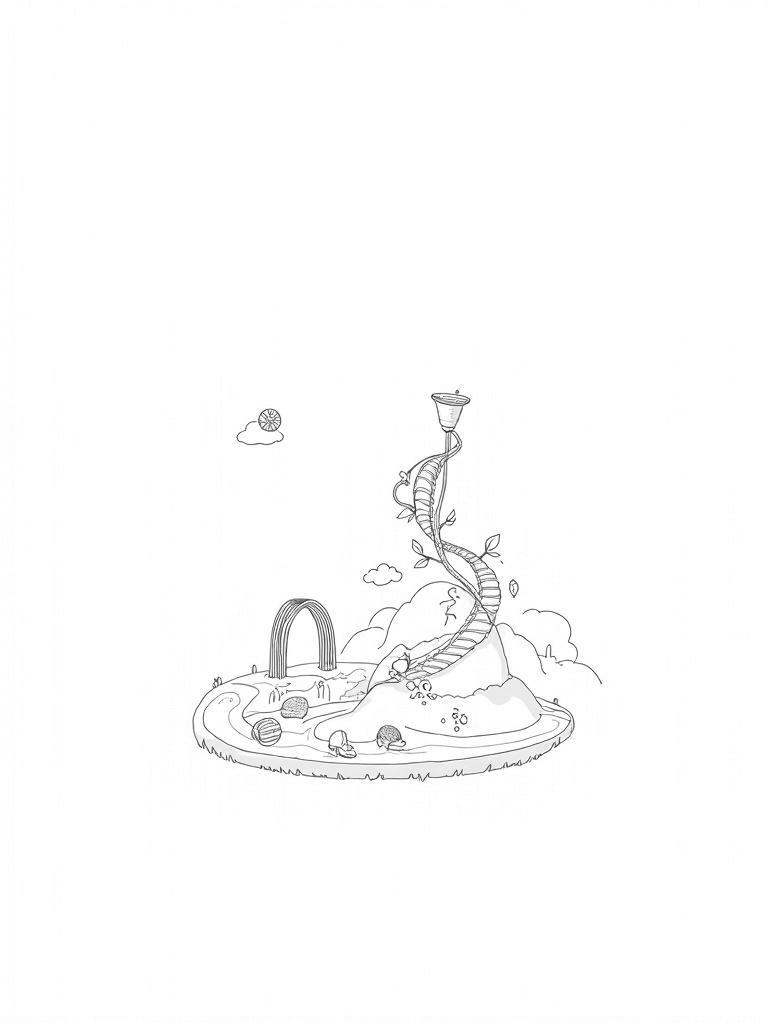 You’ll find a giant trophy made of twisting vines and leaves proudly standing on a grassy hill. Below, a colorful track made of paint splashes winds its way through the scene, lined with oversized sneakers and basketballs. It’s a vibrant place where nature and sports collide!