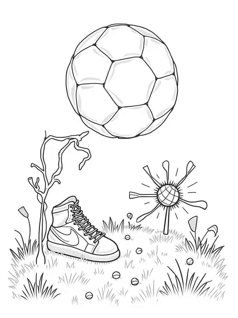 Check out this fun sports-themed coloring page featuring a giant soccer ball and a whimsical goalpost! It's a free, printable coloring page that's perfect for kids who love sports. Dive in and color your way through this playful scene!