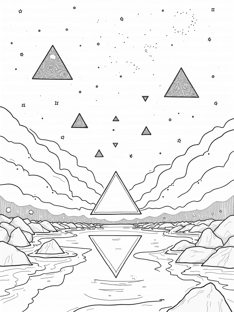 Cosmic Triangles and Reflective Lake Coloring Page