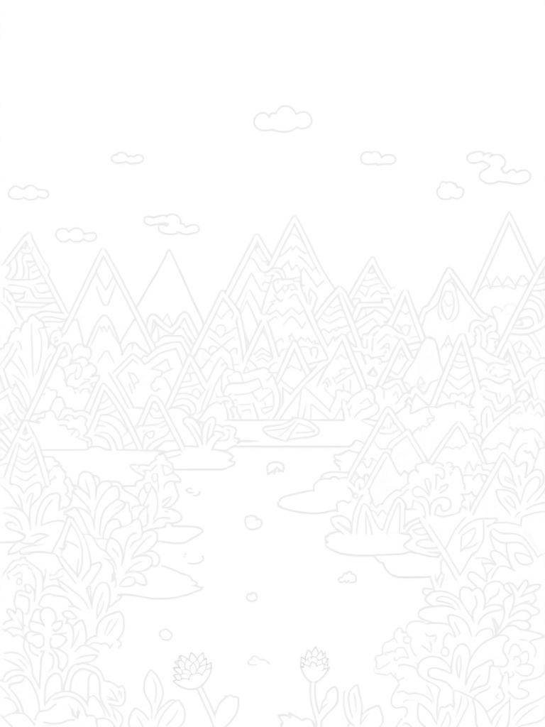 Geometric Mountain Landscape with Triangular Flowers and Pond Coloring Page