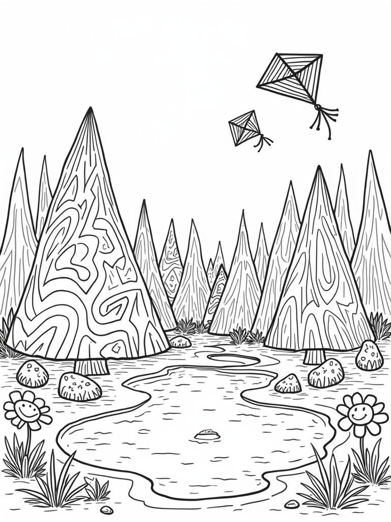 Giant Triangle Trees and Kites in a Colorful Forest Coloring Page