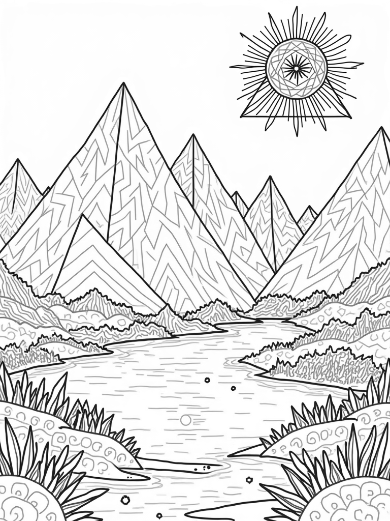Triangular Mountains and Reflections Coloring Page