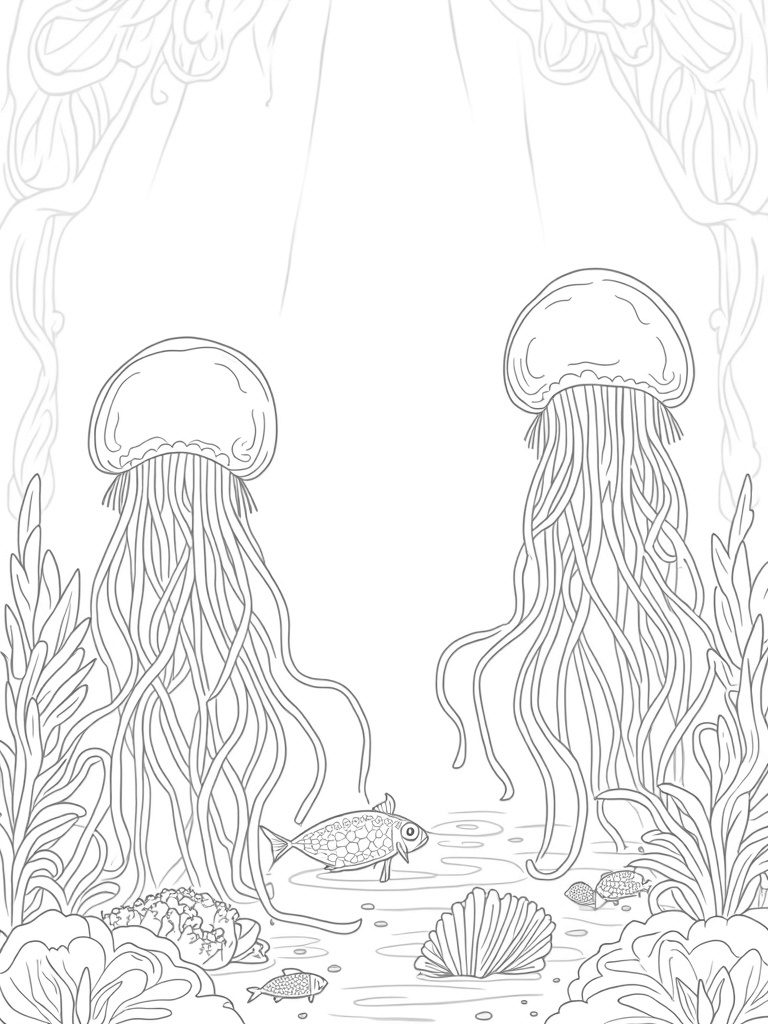 Check out this free, printable coloring page featuring an ethereal underwater garden filled with jellyfish and coral. Perfect for kids who love coloring and exploring the beauty of the ocean!
