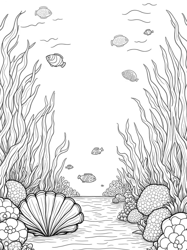 Check out this free, printable coloring page featuring a serene underwater garden filled with jellyfish, kelp, and a stunning seashell. Perfect for kids who love ocean life, it's a great way to add some color to your day!