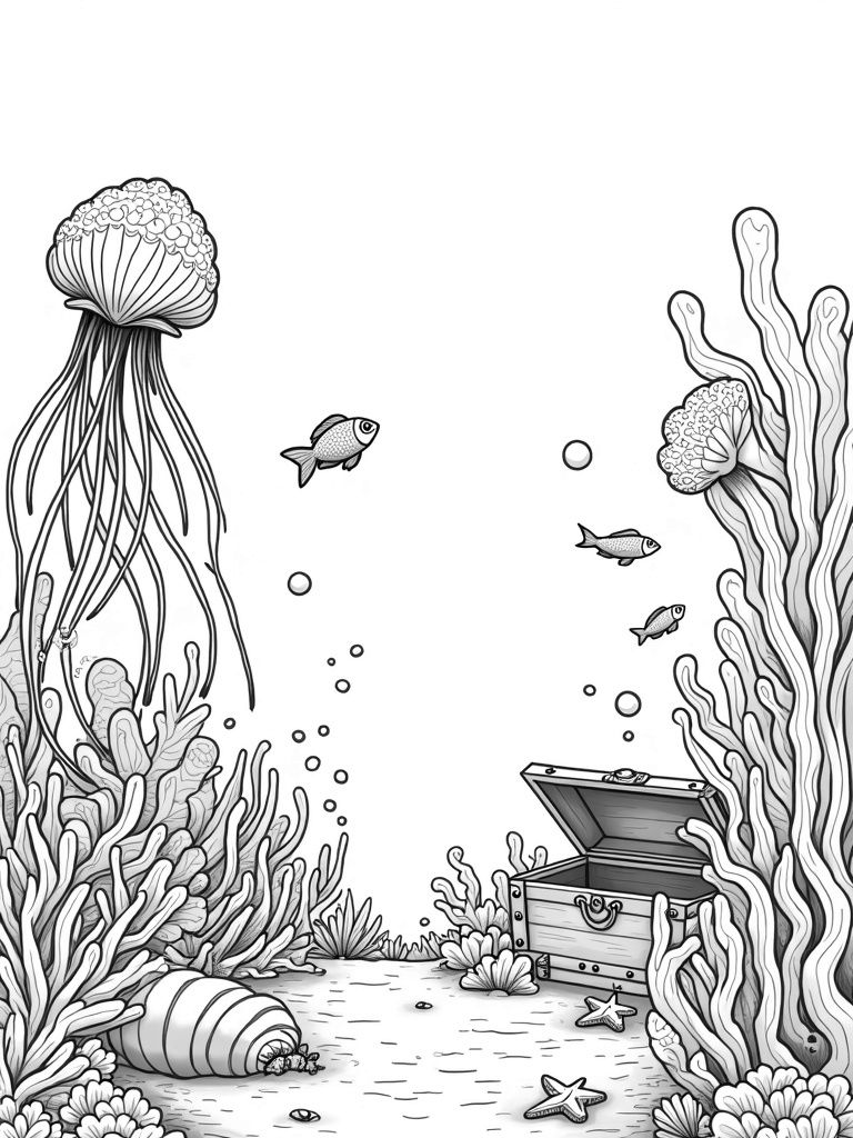 Underwater Garden with Coral and Jellyfish Coloring Page