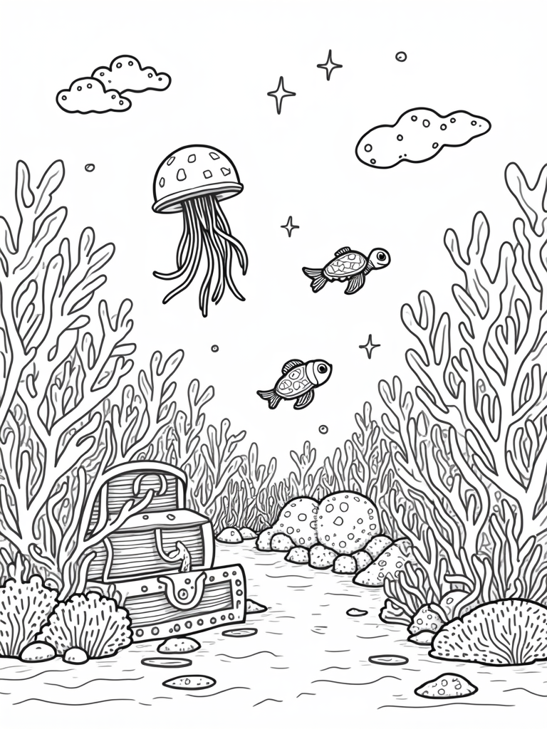 Imagine all the colors you could use! From the bright blues of the ocean to the colorful jellyfish, every part of this underwater garden is a chance to express yourself. Grab your favorite crayons or markers and let your creativity flow!