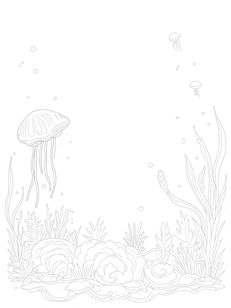 Underwater Garden with Jellyfish and Seashells Coloring Page