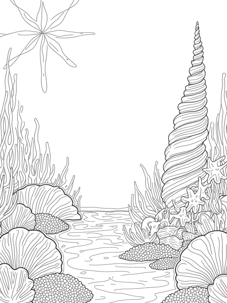 Check out this free, printable coloring page featuring a tranquil underwater garden with seashell flowers and jellyfish. Perfect for kids who love the ocean and want to explore their creativity with some coloring fun!