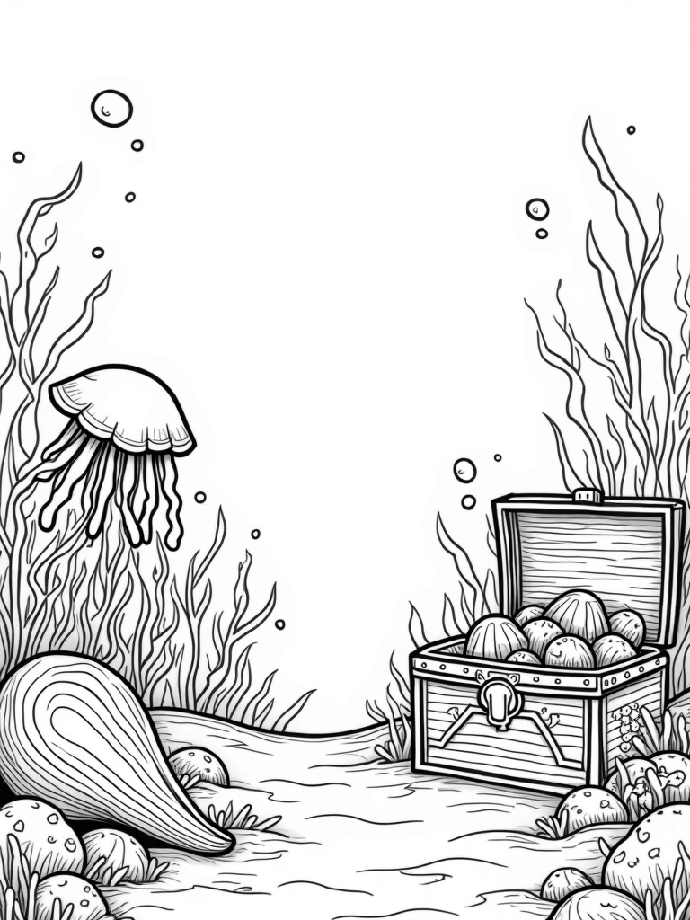 Underwater Garden with Seashells and Jellyfish Coloring Page